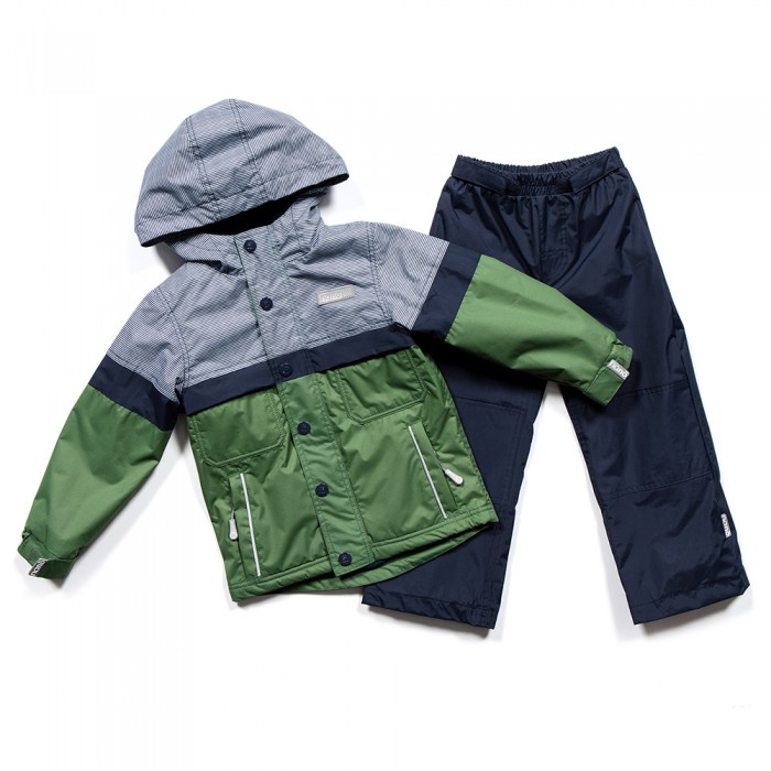 Наружная ткань мягкая и приятная на ощупь, не сковывает движения малыша. Благодаря специальной пропитке ткань не пропускает влагу снаружи и не продувается ветром, но при этом «дышит». Ткань на брюках имеет мембранное покрытие (тонкое полиуретановое напыление изнутри), поэтому случайное падение в лужу или мокрые качели не помешают прогулке.