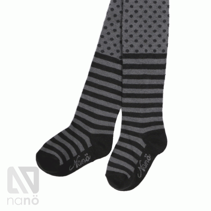Тонкие мягкие хлопковые колготки для девочек универсального серого. Комбинированный узор в полосочку и в мелкий горошек смотрится очень стильно.