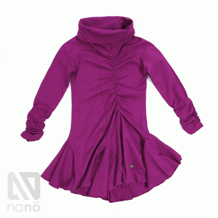 Воротничек стоечка, рукава присборены по низу, ассиметричная линия низа.