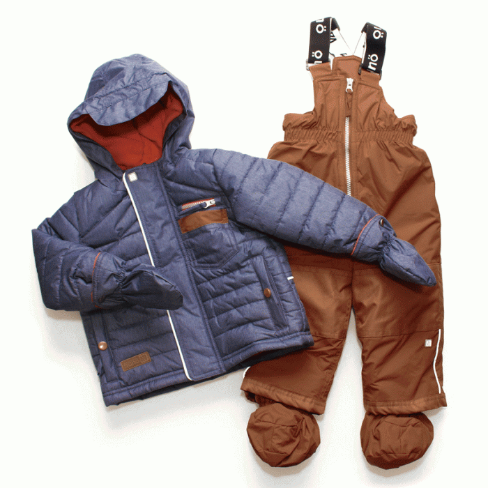 Термокомбинезон для мальчика в очень актуальной цветовой гамме. В последние годы в мужской моде все более и более попялярно сочетание темно-синего и коричневого разных оттенков. В этом комплекте однотонная стеганная куртка стального синего цвета и полукомбинезон ярко-коричневого цвета корицы смотрятся очень стильно. Термокомбинезон прекрасно дополнит шапка, разработанная канадскими дизайнерами именно под эту модель.